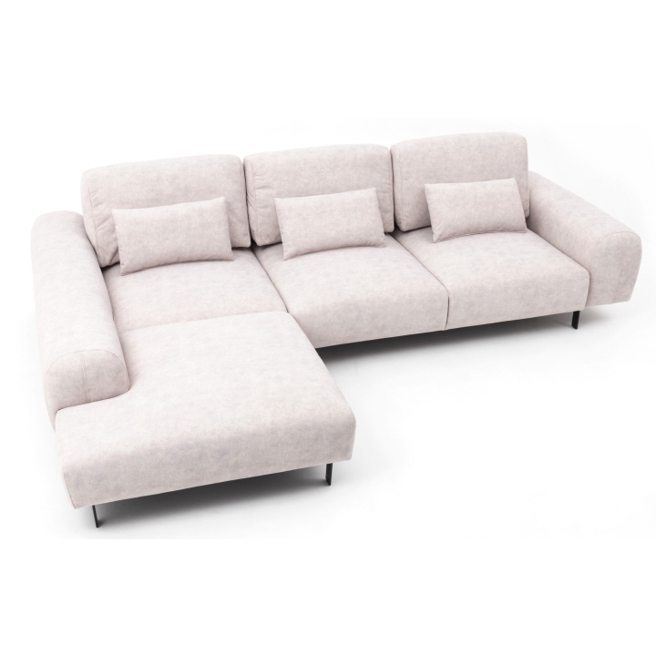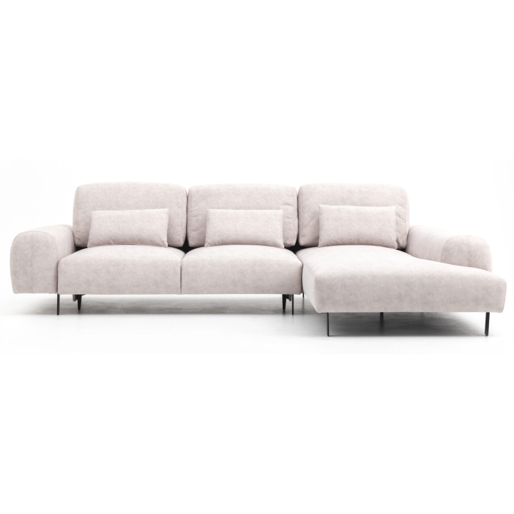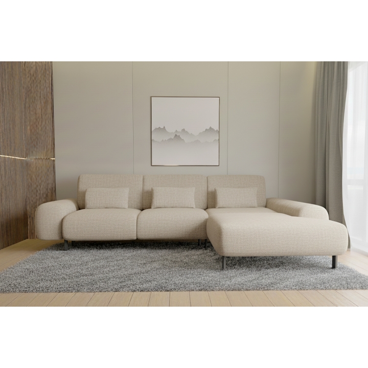 The Milan corner sofa by MP Nidzica is a refined piece of furniture, crafted with exceptional precision and attention to every detail. With dimensions of 308 cm in width, 88 cm in height, and 86 cm in depth, and an ottoman depth of 208 cm, it presents a striking silhouette that perfectly complements a modern living space. The set includes soft back cushions and two decorative pillows, enhancing both comfort and aesthetic appeal.
