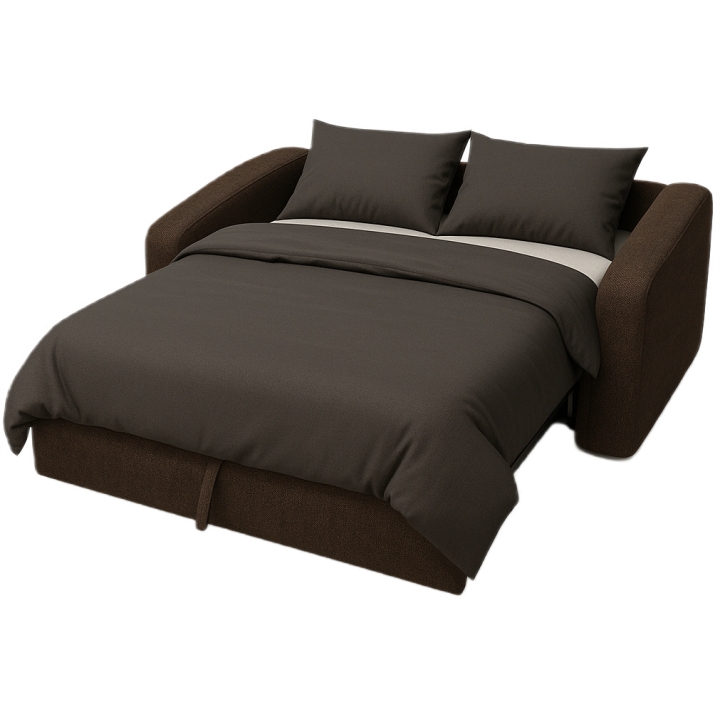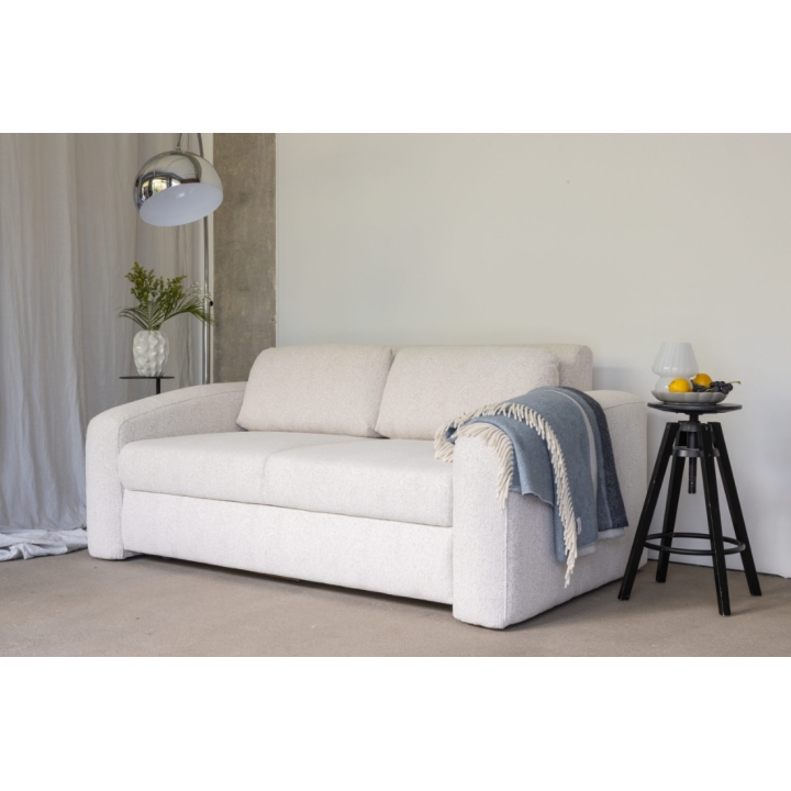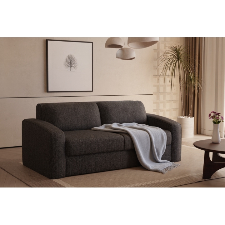 One of the sofa’s major advantages is its dolphin-type pull-out sleeper system, which allows the furniture to transform quickly into a comfortable bed. Extending the lower drawer and lifting the mattress creates a flat 145 × 195 cm sleeping surface.