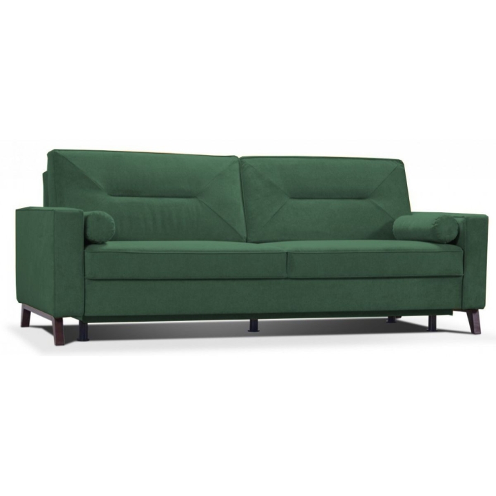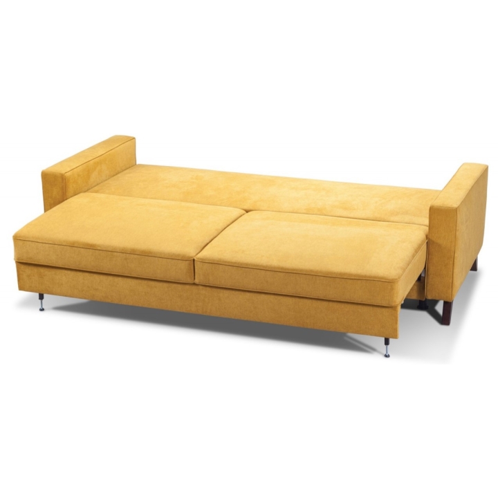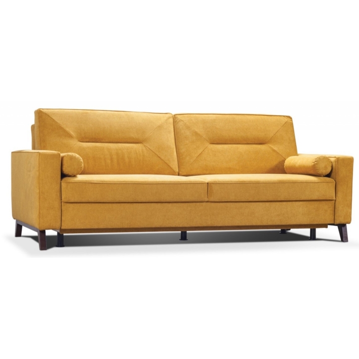 The designer Tosca sofa by MP Nidzica is inspired by the cubist trend, which blends perfectly with minimalist and art-deco interior design. The Tosca sofa is a piece of furniture that features double springing, which guarantees extraordinary comfort during daily rest. The comfortable, wide seat is combined with elegant backrests with horizontal stitching, which adds class and elegance to any interior. The sides feature stylish under-arms and low armrests. The Tosca sofa is a three-seater model with a DL type sleeping function and a large container for storing bedding.