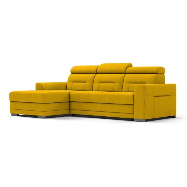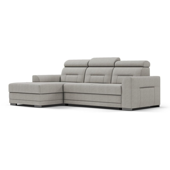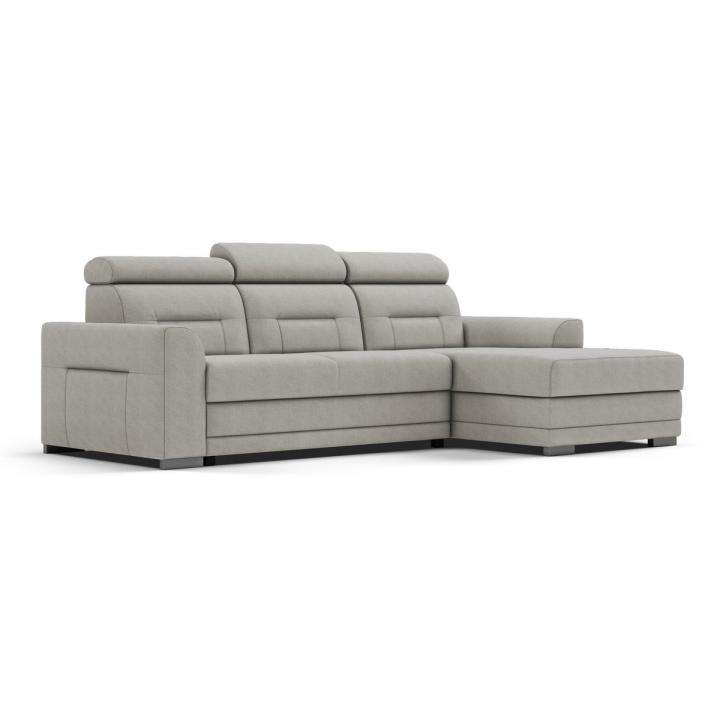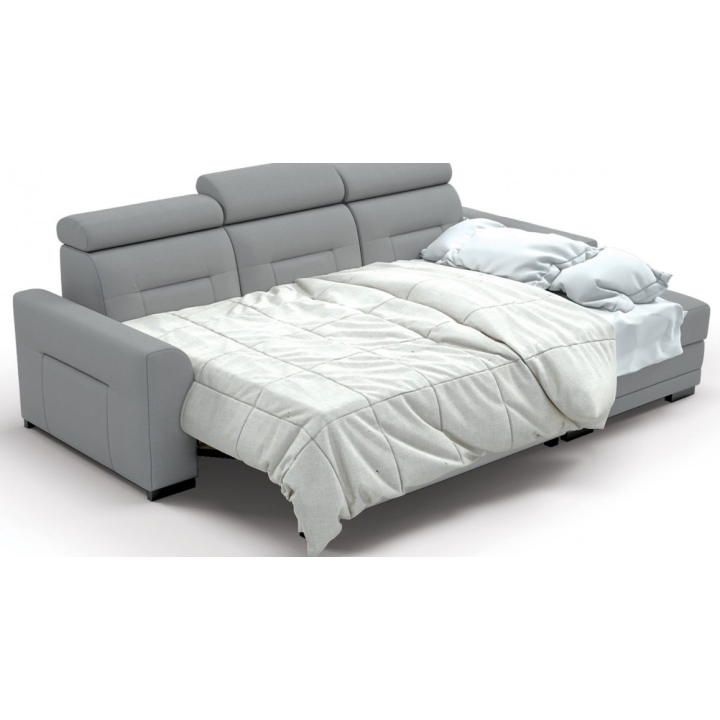 The Costa corner sofa by MP Nidzica is a piece of furniture ideal for small living rooms where we want to create a cosy yet modern atmosphere. The classic structure of the corner sofa is highlighted by designer stitching on the backrest. The spacious seat of the corner sofa is filled with bonell springs, which, combined with the adjustable headrests, will guarantee you pleasant relaxation after a hard day at work. The anatomically shaped backrests are filled with foam and upholstery belt, which significantly increases the quality and durability of the furniture. The Costa corner sofa has a dolphin-type sleeping function, as well as a large bedding container, so your living room can become a functional bedroom in a matter of moments.