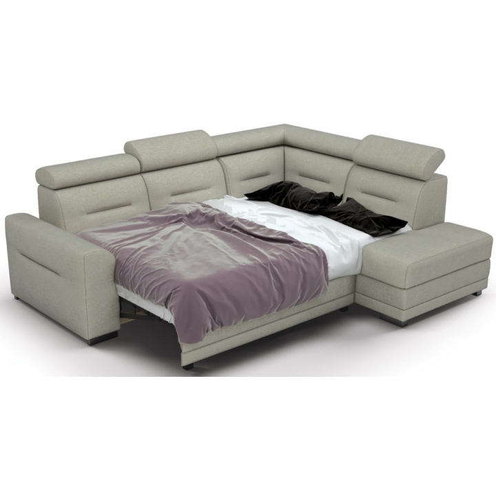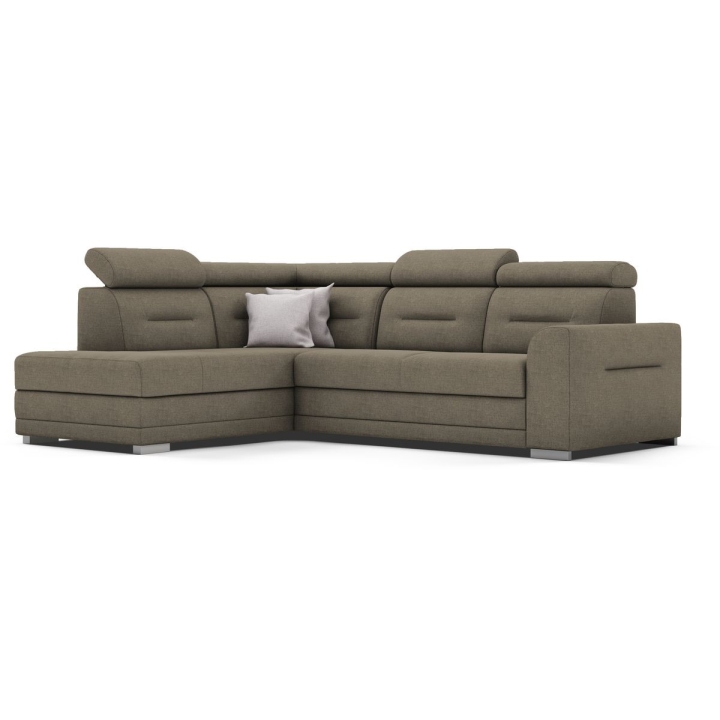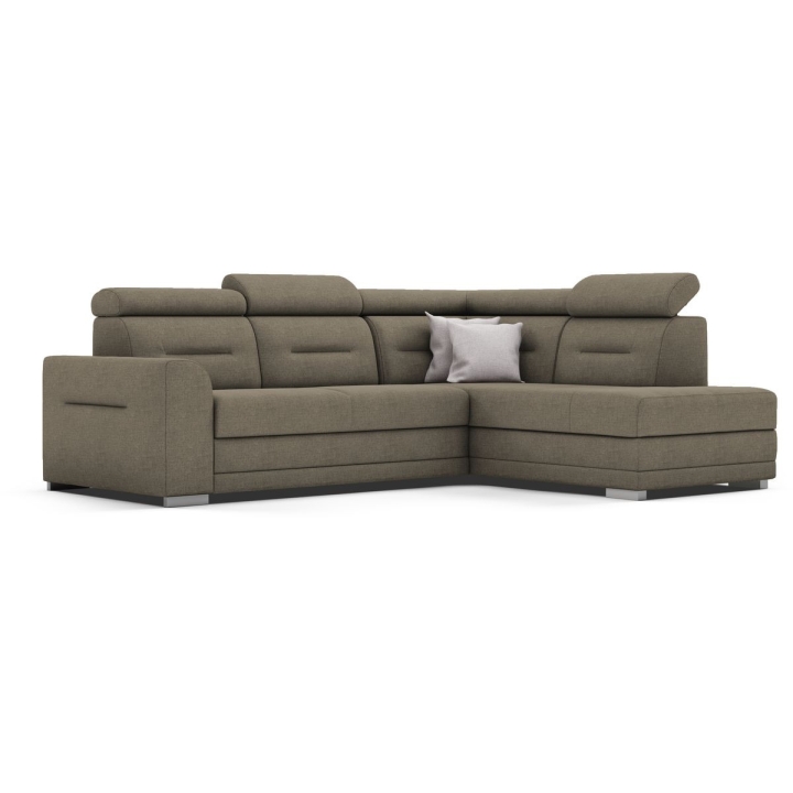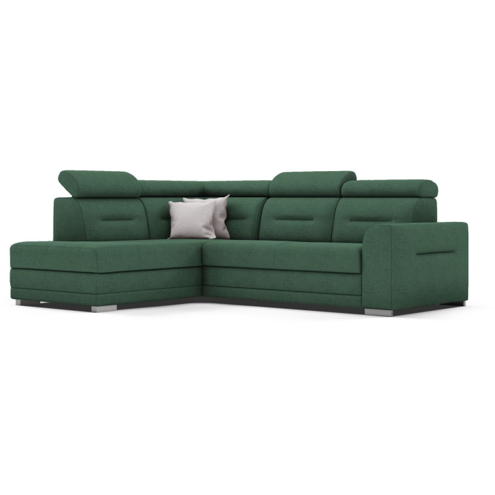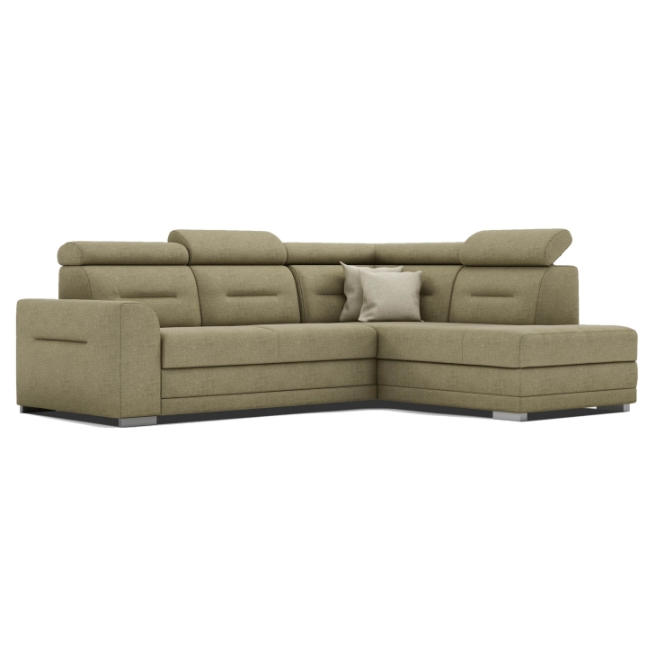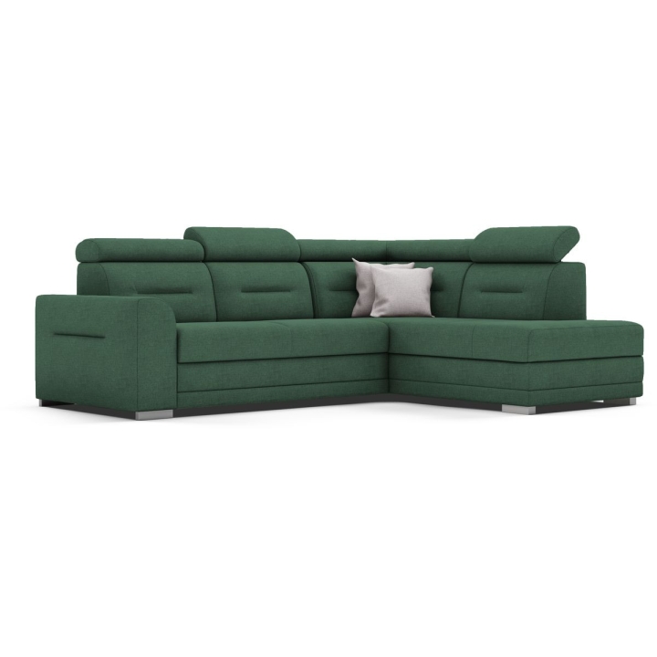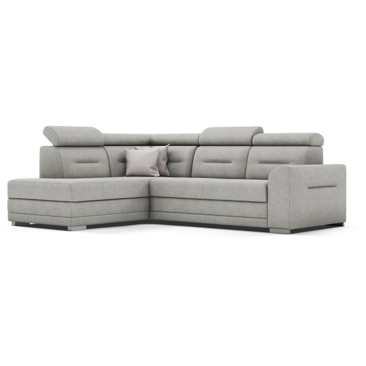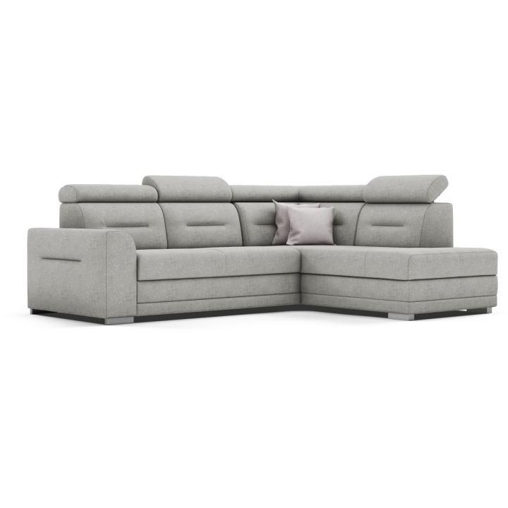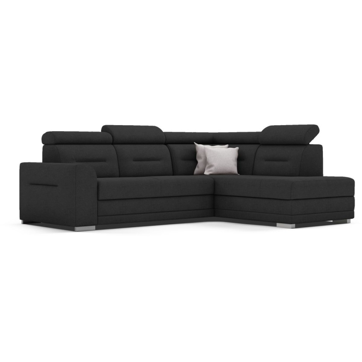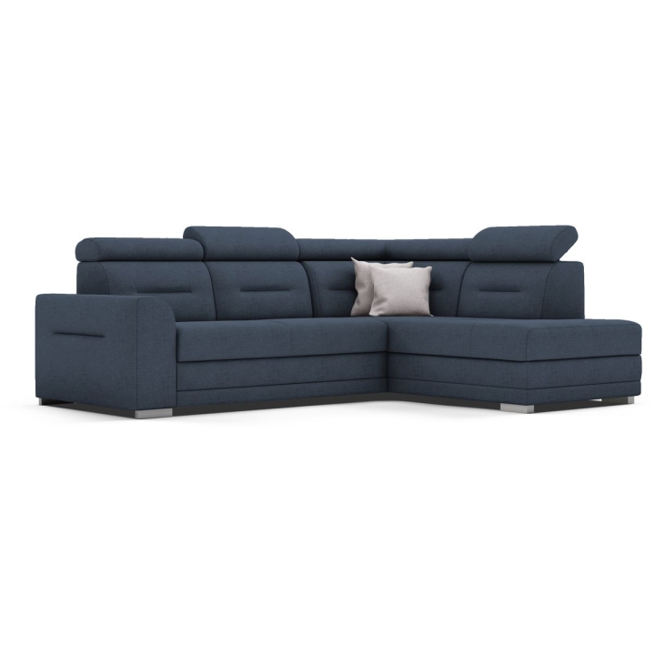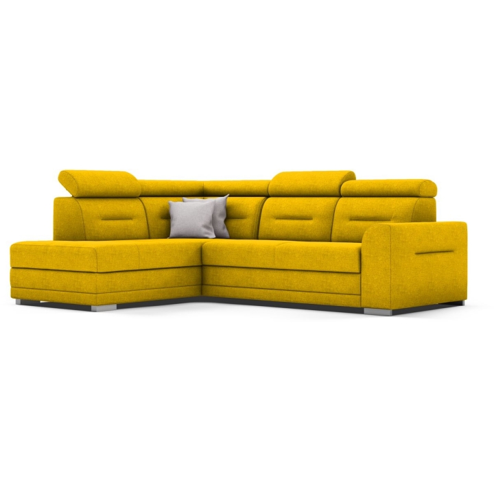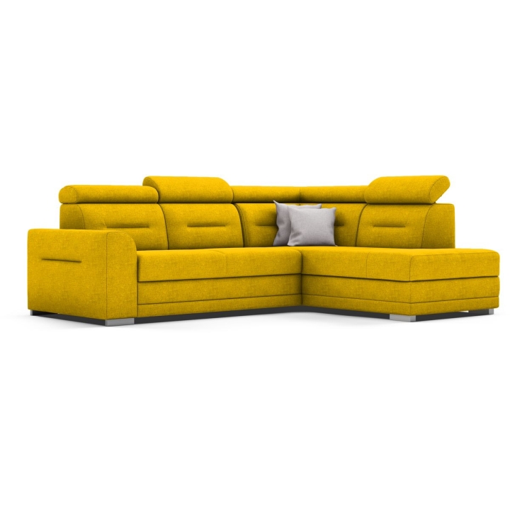 The Salto corner sofa by the MP Nidzica manufacturer is a guarantee of comfort and an elegant look for your living room. The corner sofa perfectly combines decorative and lounge functions, thus becoming a favourite piece of furniture in your home. The comfortable seat of Elios corner sofa is filled with a double spring: bonell and corrugated seat, guaranteeing increased durability of the furniture. The ideally shaped backrest, on the other hand, has been filled with HR type polyurethane high resilience foam to ensure a perfect fit to your back. Adjustable headrests guarantee you pleasant relaxation after a hard day, and the practical Puma-type sleeping function will quickly transform your living room into an elegant bedroom. The Salto corner sofa is complemented with a large bedding container.