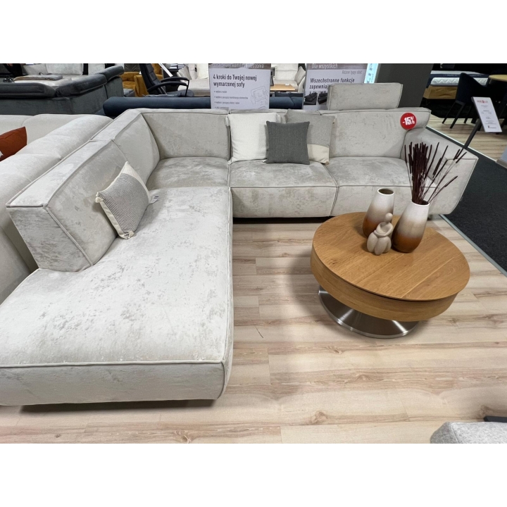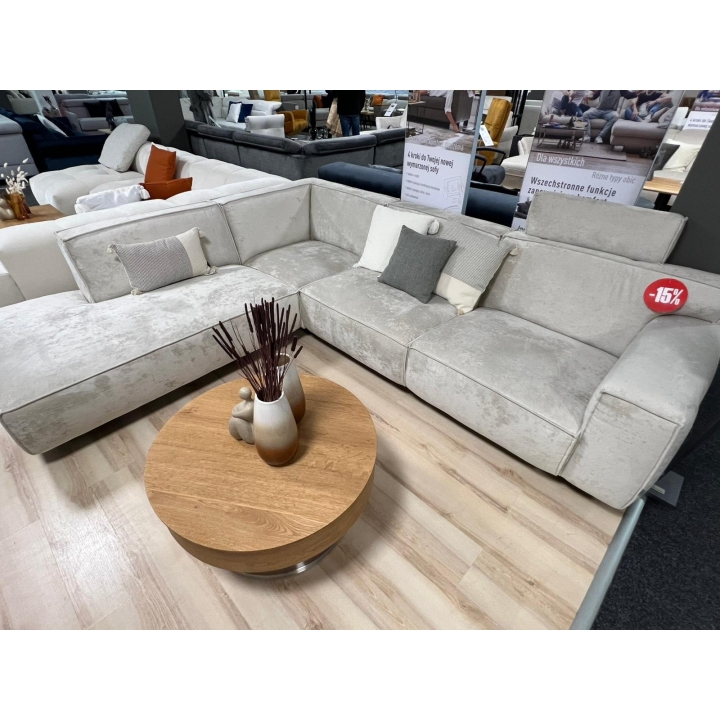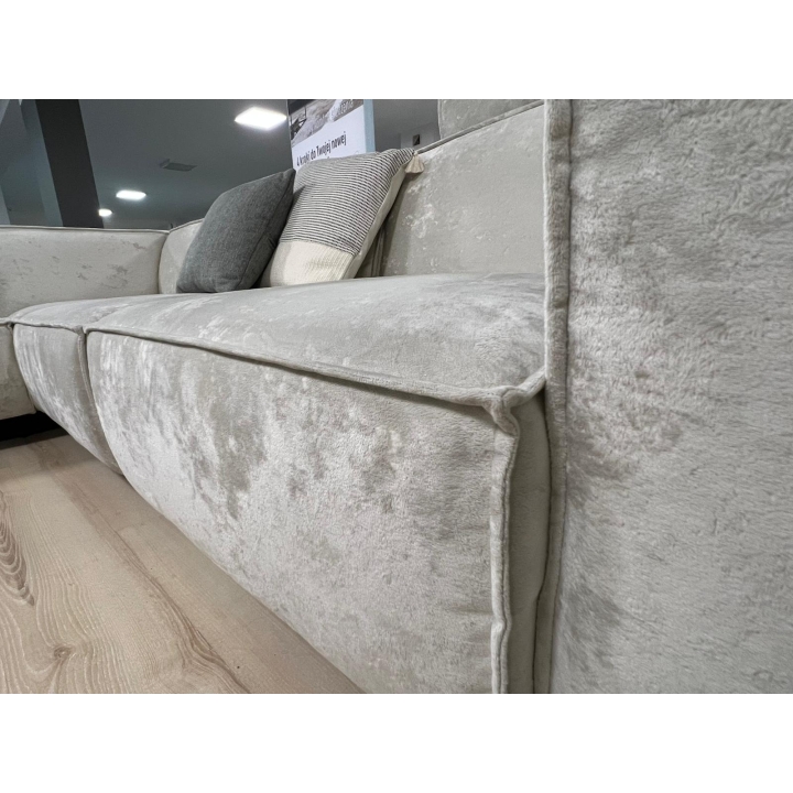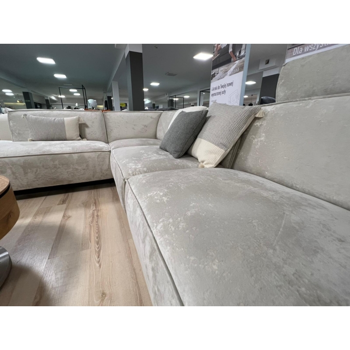 The corner sofa is available exclusively in this configuration and fabric, ready for immediate delivery. It is a model created for maximum comfort and modern design, without the possibility of changing modules or upholstery.