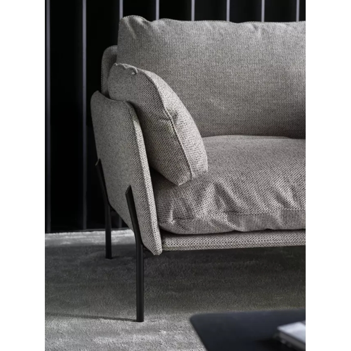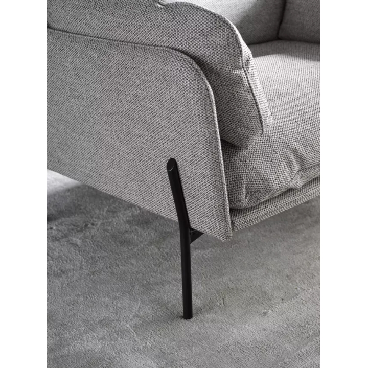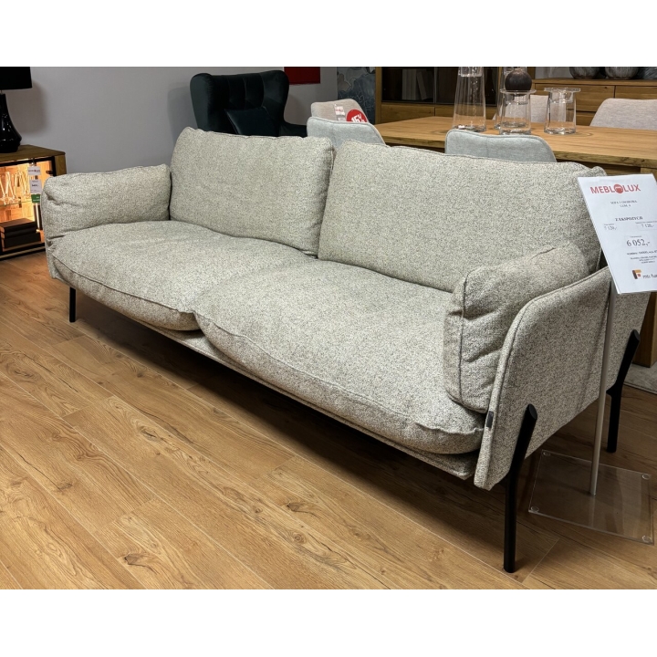 The Aldon three-seater sofa by MTI-Furninova is an upholstered sofa in Chanel Nature gr. C fabric measuring 224x93x87 cm, designed with modern interiors in mind. Equipped with reversible back cushions that increase durability and make it easy to maintain the furniture. The microfibre-covered high-flexible foam seat provides comfort and adequate resilience. Black metal legs with a height of 23 cm give the sofa lightness and make it easier to keep the underneath of the furniture clean.