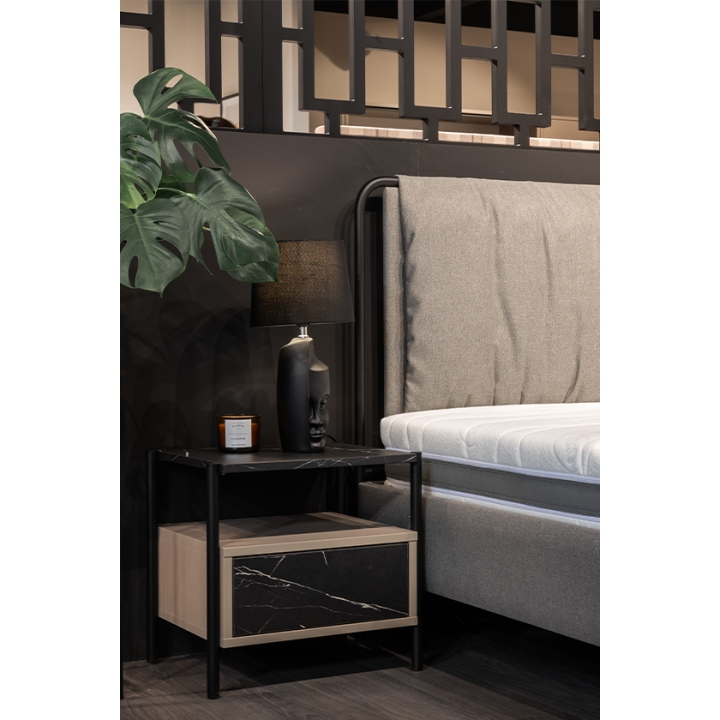 The Marmi model is characterised by careful craftsmanship and the use of high-quality materials, which translates into its durability. The modern combination of metal and fabric creates a coherent whole, and the lack of a container keeps the bed light in appearance. By choosing New Elegance Furniture, you get a comfortable bedroom bed that will become the focal point of your spacious bedroom. This model is sure to meet the expectations of anyone who appreciates high quality and modern design.