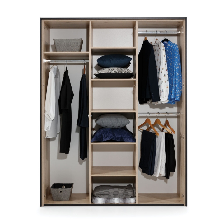 three-door wardrobe with mirror, inside shelves and space for hangers