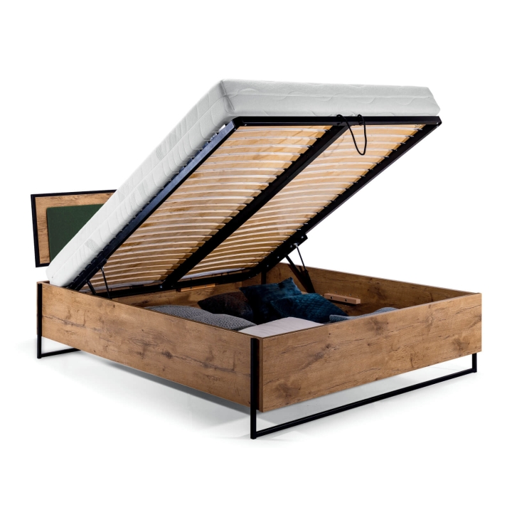 The bedroom bed from the Color Loft collection is a truly innovative solution perfect for loft, industrial and minimalist interiors. The body of the bed is made of high-quality laminated board in the colour of Lancelot oak, which makes the structure durable and resistant to mechanical damage. The Color Loft bed is equipped with a practical and soft headrest, which will allow you to relax with an interesting book in the afternoon, at the same time providing adequate support for your back. The furniture's asset is also the bedding container. The furniture also has a large sleeping surface of 180 x 200 cm. Warm, elegant colours broken with exclusive black add a modern character to the piece.