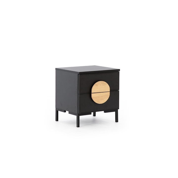 The Ovalo bedside table is an original piece of furniture that combines an elegant black matt SD-textured furniture board from Pfleiderer's collection and large oval-shaped decorative elements in oak Hickory board with beautiful wood grain. The two capacious drawers are ideal for storing the most important items you want to keep close at hand. If you are looking for a functional and tasteful bedside table to complement your bedroom, the Ovalo bedside table will work perfectly! After all, this neat piece of furniture can easily fit between the bed and the wall !