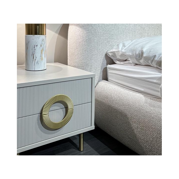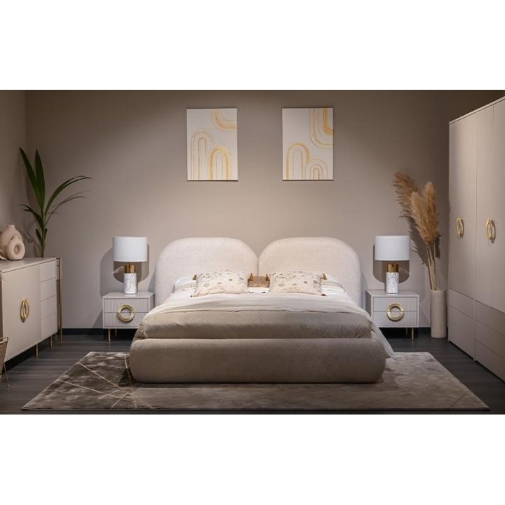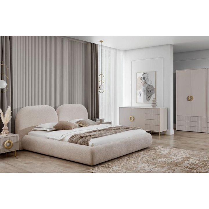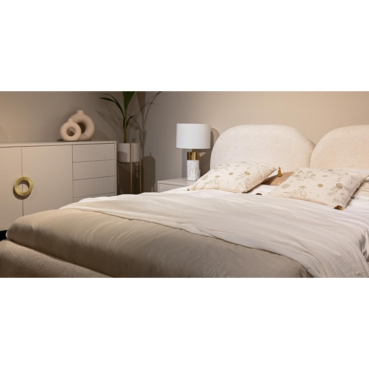 The180x200 Nubo bed from the manufacturer New Elegance is a perfect combination of elegance and modernity. Made of high quality furniture board, it guarantees the durability of the furniture, and the whole piece perfectly fits into the fashionable glamour style. The headrest has an original rounded shape that is split down the middle. With a width of 220 cm, a height of 95 cm and a depth of 233 cm, it offers a comfortable sleeping space of 180 x 200 cm. The 180x200 Nubo bed will be an elegant accent in any interior, blending perfectly with modern arrangements. Its modern shape brings warmth and subtle luxury to the room. It is an ideal bedroom bed which will meet the expectations of even the most demanding users.