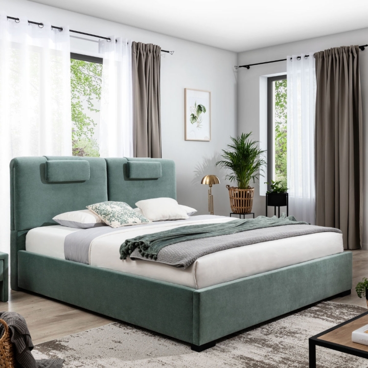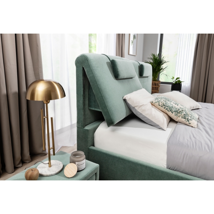 The BOHO upholstered bed is a proposal for those looking for a stylish piece of bedroom furniture in the boho spirit. This model is distinguished by a high, divided into two parts headrest that can be opened, which provides comfortable support for the back while relaxing, reading a book or watching a film. An additional advantage is the soft, sliding head bolsters, which can be freely adjusted both vertically and horizontally to suit your needs.