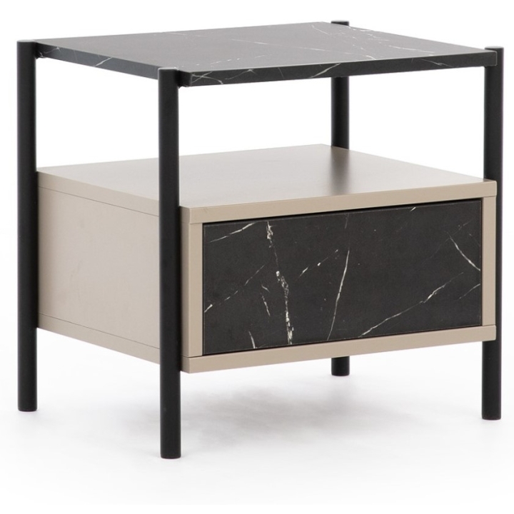 With dimensions of 50 cm wide, 48 cm high and 40 cm deep, the Marmi bedside table will fit perfectly into a variety of interior settings, whether in the bedroom or the living room. The push & pull opening system makes it easy to access the contents of the drawer, making it a convenient addition. Thanks to its design, the table will become a striking addition to the space, combining aesthetics with convenience.