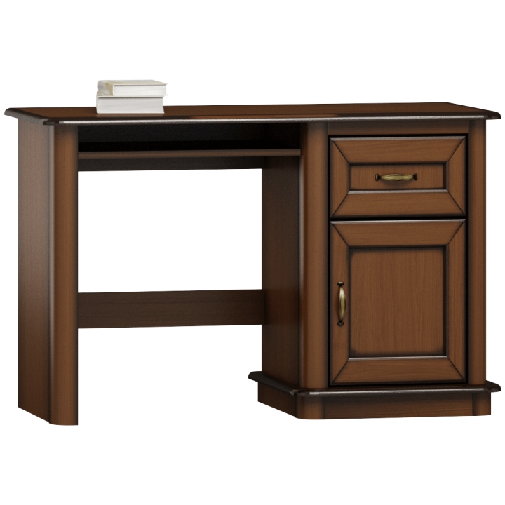 The Stylowa desk is a functional and designer desk with plenty of space to work. The Stylowa desk is the perfect choice for those who appreciate applied, classic elegance and also want furniture characterised by modern functionality and durability. It is made of high quality board veneered with natural wood in the shade of walnut. It is equipped with a wide work surface, a drawer and a cupboard. The top-quality materials used in the production of the STYLOWA I collection add to the charm of the perfect, somewhat austere lines.