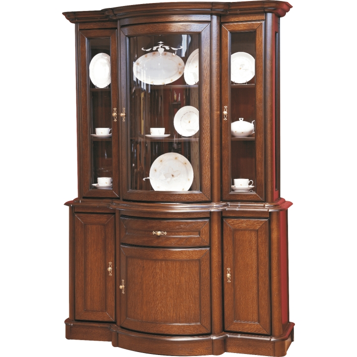 The furniture from the Diana collection, thanks to its universal features, is a trend for years to come. The design line is reminiscent of the best classic forms. A series with simple front divisions, without superfluous ornamentation, to make the natural arrangement of the grain visible. The cabinet has three glazed doors, the semi-circular wing is decorated with a sandblasted decorative motif. The structure of the furniture allows beautiful porcelain or other trinkets to be exposed. The vitrine goes perfectly with a chest of drawers from the same collection, creating together a piece of furniture that allows you to compose a refined in style living room or dining room.