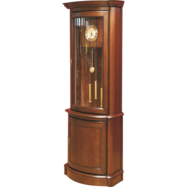 Are you dreaming of a piece of furniture in an elegant style ? Choose furniture from the Diana collection ! The design line refers to the best classical forms. A series with simple front divisions, without unnecessary ornamentation to make the natural grain of the wood visible. The chest of drawers and the display cabinet each have one door leaf, which in the display cabinet is glazed and the interior features a decorative clock. The slim, semi-circular design of the furniture with the beautiful clock is ideal for the living room, dining room or study The clock is made of solid wood in walnut colouring.