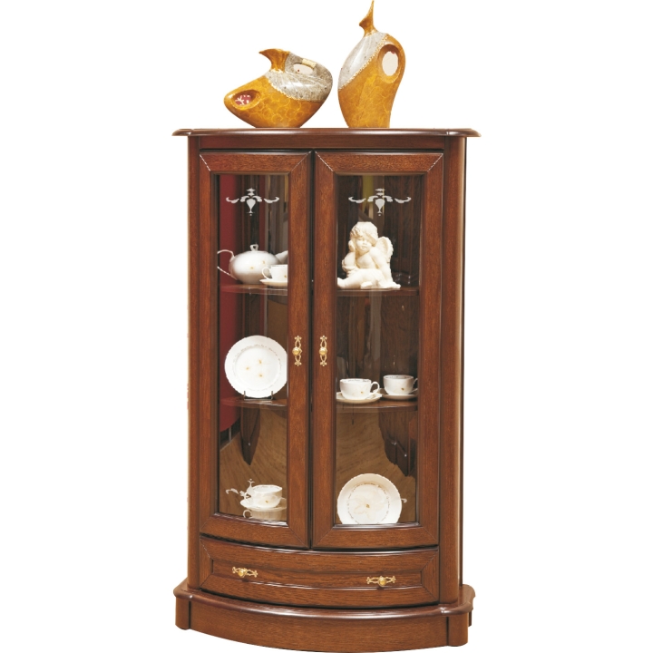 Serviette2D1S from the Diana collection is a tasteful piece of furniture that will certainly appeal to all lovers of the Baroque style! The canteen has a pair of glass doors decorated with a sandblasted decorative motif, under which there is a capacious drawer. The slender, semi-circular design of this piece of furniture will allow you to display beautiful porcelain or other trinkets in your living room. This furniture is made of solid wood, natural veneers, using milled glass. The design line is reminiscent of the best classic forms. A series with simple front divisions, without unnecessary ornamentation to make the natural grain pattern visible. Stained in a walnut shade, it adds a tasteful finish to the solid!