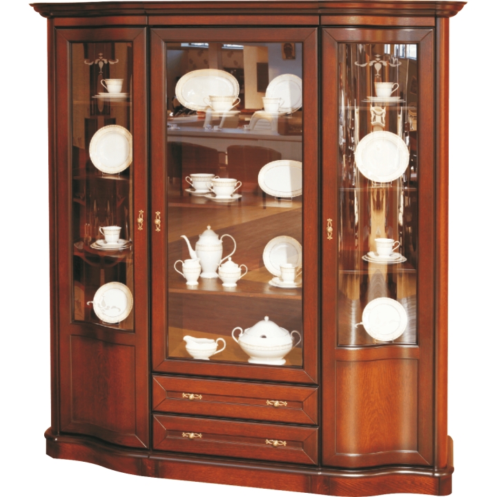 Furniture from the Fala collection of high quality furniture for the living room or dining room. The furniture has three doors and two very capacious drawers. The large storage area allows you to comfortably arrange the necessary items. It is ideal for the dining room, living room or even the study. Elegance and high functionality make it a very interesting proposal for demanding clients. The furniture is maintained in soft forms and the colouring in shades of walnut provide a pleasant image to the eye.