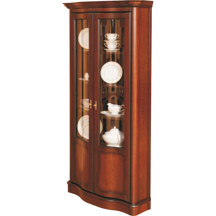 The corner bookcase from the Fala collection is sure to help you create a stylish living room or dining room. The furniture has two doors. The structure of the piece of furniture makes it possible to display beautiful porcelain or other trinkets. What distinguishes this piece of furniture ? Certainly the curved, wavy fronts! A noble character is added by the high-quality, carefully modelled brass handles. The entire collection has been maintained in gentle forms and walnut shades are a pleasing image to the eye. This collection is distinguished by a noble line of classic furniture that takes on a new, exclusive form.
