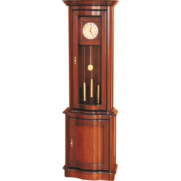 Furniture from the Wave collection is high quality furniture for the living room or dining room. The presented piece of furniture is a quartz clock, which will prove to be not only a stylish addition to the interior, but also a practical piece of equipment. The furniture is made of MDF board veneered with natural oak and solid wood. The curved, wavy fronts are a perfect addition to interiors maintained in a classic style. A noble character is added by the high-quality, carefully modelled brass handles. All maintained in gentle forms and coloured in walnut shades are a pleasing image to the eye.