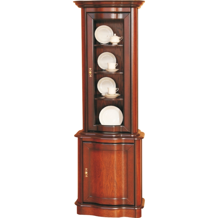 The Fala vitrine is part of a collection from the Olejnikowski brand. The collection is distinguished by a noble line of classic furniture which takes on a new, exclusive form. The slender structure of the furniture will allow you to expose beautiful porcelain or other trinkets in the living room, dining room or study. The display cabinet goes perfectly with the chest of drawers, so together they will create a capacious piece of furniture both for storing and displaying a variety of items. The overall design, which is kept in soft forms and coloured in shades of walnut, is a pleasing image to the eye.