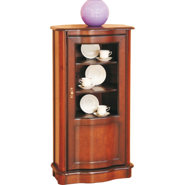 Serviette from the Fala collection is a piece of furniture in the classic style, which will be perfect in the living room or dining room. It has one half glazed door, which gives it a light appearance. The noble character is added by the high-quality, carefully modelled brass handles. The furniture is made of MDF board veneered with natural oak and solid wood, which makes it durable and resistant to various damages. All maintained in gentle forms and coloured in shades of walnut provide a pleasant image to the eye.