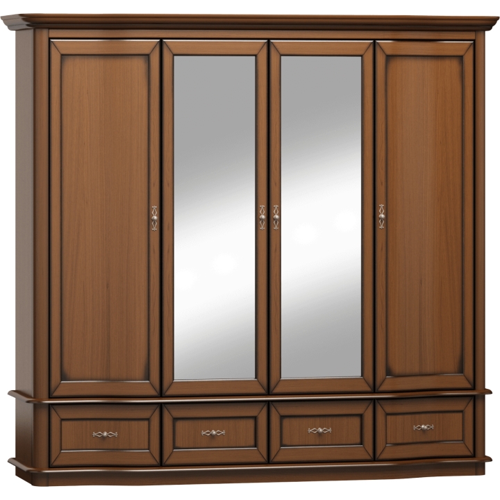 Are you looking for a capacious wardrobe in a classic style ? Choose a model from the Fala collection ! It is a solid piece of furniture, which emphasises the classic and elegant character with its simplicity and details. The wardrobe consists of three large doors and three drawers. Maintained in soft forms and stained in walnut tones, it is a pleasant image to the eye. The furniture was made of MDF board veneered with natural oak and solid wood. The noble character is added by the high-quality, meticulously modelled brass handles. It will perfectly complement the interior of the bedroom and living room.