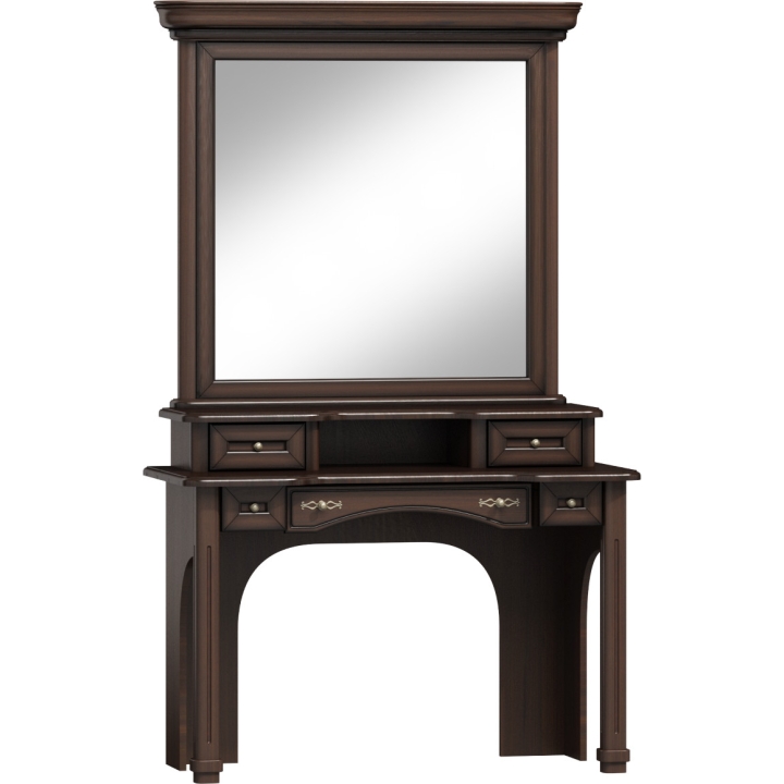 Toilet from the Fala collection byOlejnikowiski Furniture is a tasteful piece of furniture for a bedroom or living room in the classic style. The collection is distinguished by a noble line of classic furniture, which takes on a new, exclusive form. The dressing table has a mirror, drawers and a spacious top. A noble character is added to the whole by high-quality, carefully modelled brass handles. The furniture is made of MDF board veneered with natural oak and solid wood. The whole kept in gentle forms and the colouring in shades of walnut provide a pleasant image to the eye.
