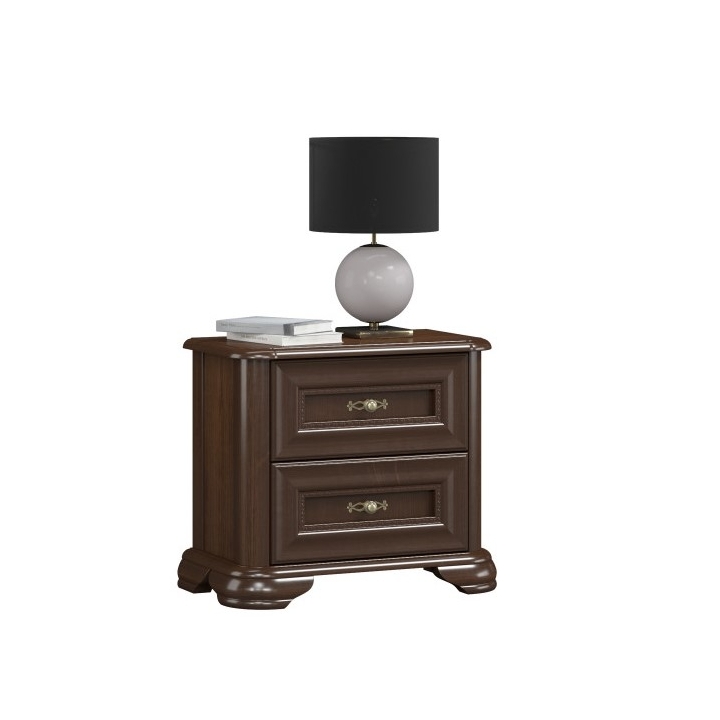 The bedside cabinet from the Stylish II collection is a solid piece of furniture made of solid wood. It is available in the following colours: W 101 walnut, W 105 antique cherry. Equipped with two drawers it provides space for small accessories you want to have always at hand. It presents itself perfectly together with the Stylowa II bed. Thanks to the geometric cuts, this collection has a definite character. The massiveness of the furniture and its natural colours make it look dignified and extremely solid. The presented furniture is a design inspired by the best traditions of furniture art.