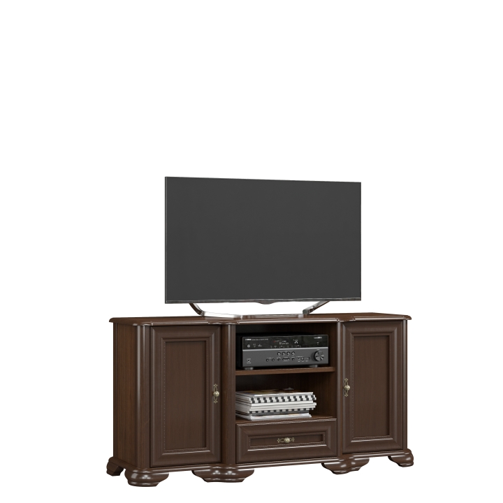 The collection is characterised above all by its simplicity of form and minimalist style. The furniture consists of two cabinets, two shelves for electronic equipment and a drawer. Thanks to the geometric cuts, the collection has a definite character. The practical drawers and recesses will allow you to store all your necessary accessories. The chest of drawers under the TV is also a perfect solution for completing the arrangement. The Stylish II collection is a design inspired by the best traditions of furniture art. Thanks to meticulous workmanship, the doors and drawers open smoothly, while the perfect fit of the elements makes the furniture resistant to long-term use.