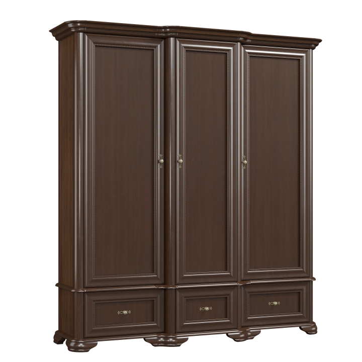The wardrobe from the Stylish II collection is an excellent choice for lovers of traditional furnishings, looking for new high-quality products. The collection is characterised primarily by simplicity of form and a minimalist style. Thanks to the geometric cuts, the collection has a definite character. The Stylish II wardrobe consists of a three-door front and three drawers. Such a structure will certainly accommodate many pieces of wardrobe and help you organise the room. Walnut colouring will add a tasteful character to the arrangement. Thanks to meticulous workmanship, the doors and drawers open smoothly and the perfect fit of the elements makes the furniture resistant to long-term use.