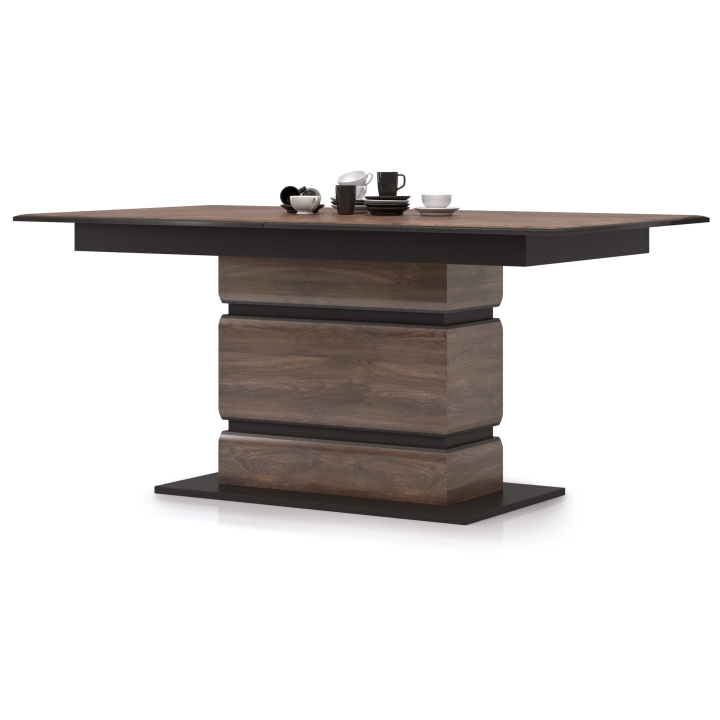 The table from the Inferno collection is a solid piece of furniture, designed for people who are looking for elegant furniture for their interior. A characteristic feature of this collection is the natural materials used in its production: wood and oak veneer. The modern form of the furniture will certainly add a distinctive character to the interior. Thanks to its original, geometric shapes, you can create an interesting interior design. The table from the Inferno collection will be perfect for the living room or dining room, providing a place to eat meals together. As a result of the innovative combination of wooden fins with black MDF, this has given the furniture depth and intriguing mystery.