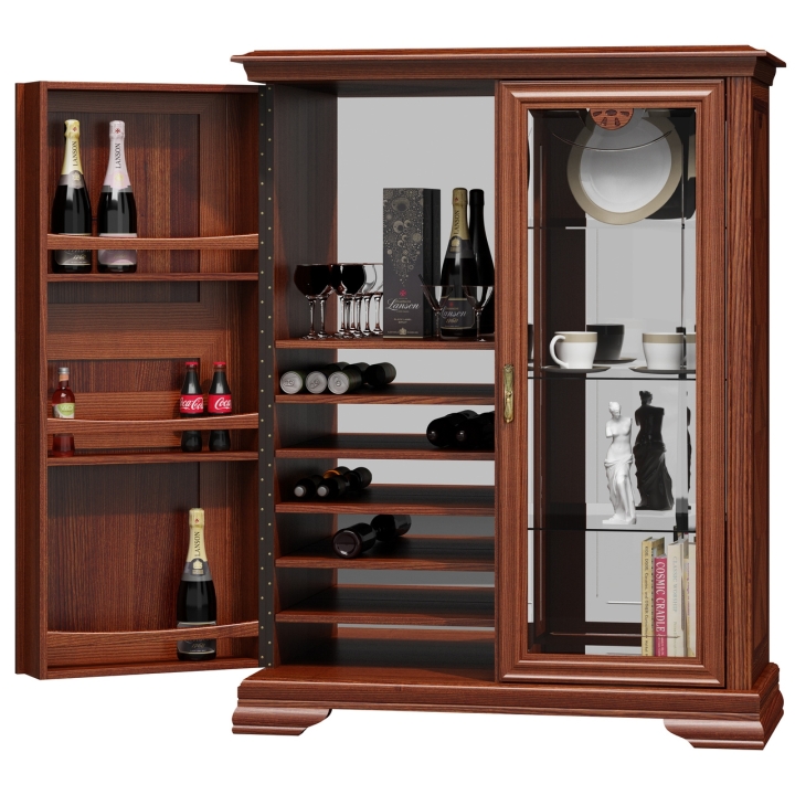 The bar from the Milano collection is a piece of furniture inspired by the Italian style. It consists of two wooden doors and one glass door, which provide great decorative possibilities, a drawer designed in the centre of the unit deserves a special mention. The bar is made of solid ash wood, which is present in the legs, crowns, vertical posts and frames of the fronts. Attention is drawn to the quiet closing, bevelled glass and brass handles. The warm colouring of the furniture in a cognac shade will make the room decor feel cosy.