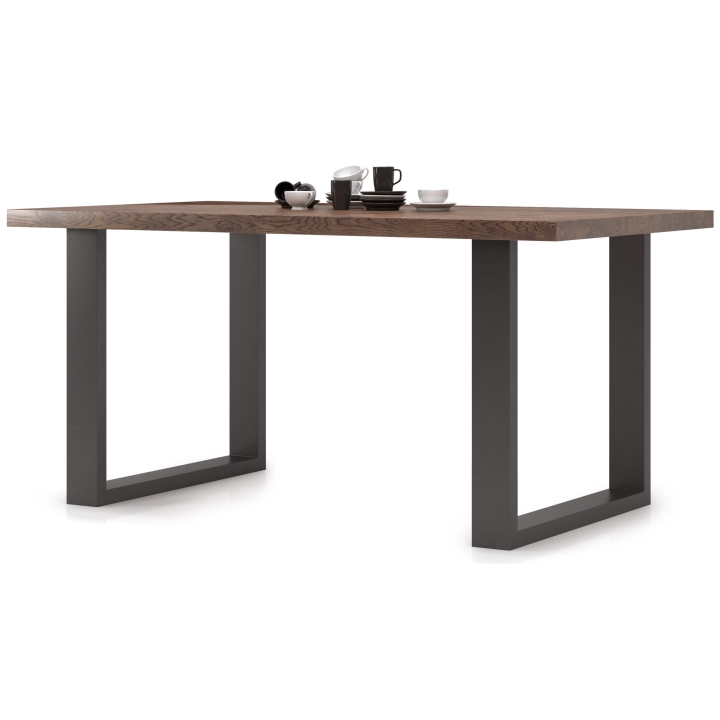 The Inferno table is a high-quality piece of furniture for people who are looking for elegant furniture for their interior. A characteristic feature of this collection is the natural materials used in its production: wood and oak veneer. The Inferno table is ideal for loft style and modern interiors. The furniture has a solid, thick top with a width of 90 cm. It is set on black metal legs, which add to the distinctive look of the piece. The furniture is made of natural raw materials and the surface is finished with oil. The table will certainly become a meeting centre and a place for eating meals together. The Inferno II table is designed for 6 people.