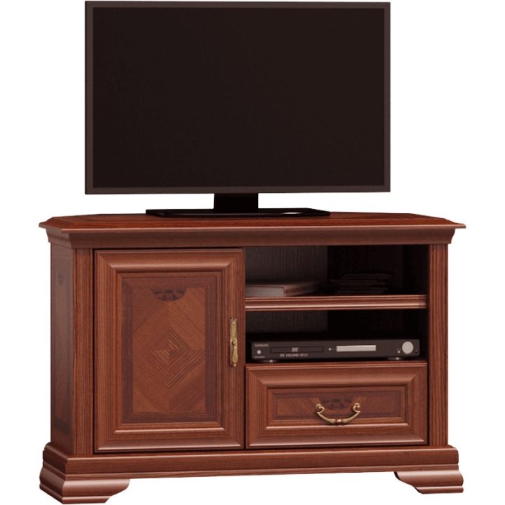 The RTV table from the Milano collection is an elegant piece of furniture that will add charm to the TV corner in your living room. The stylish furniture is made of solid ash wood, which is present in the legs, crowns, vertical posts and front frames. Particularly noteworthy is the quiet closing and brass handles. The Inferno RTV table consists of a wooden door, a drawer and a shelf. The warm colouring of the furniture in a cognac shade will make the room decor cosy. Enjoy a beautiful interior for years to come with the Milano furniture collection.
