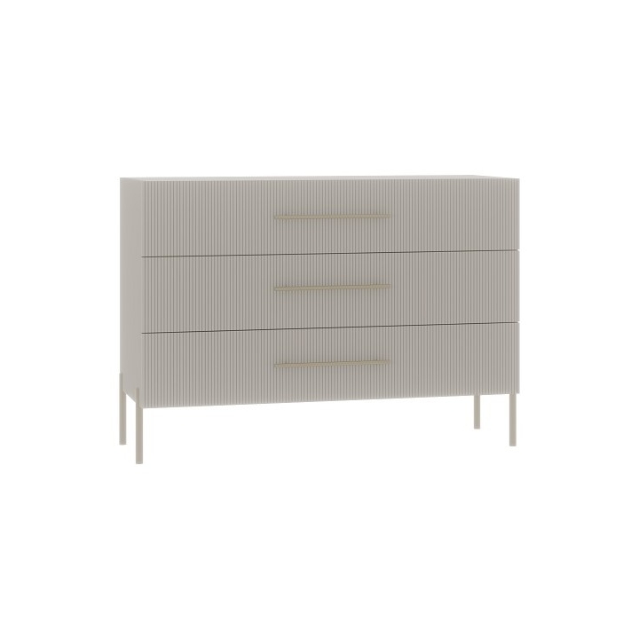 The piece of furniture has three capacious drawers that provide easy access to stored items. The brushed gold handles and high legs in the same colour emphasise the style of the chest of drawers, while the visible corrugations introduce an interesting detail. The 3S Sersey Sers.17 chest of drawers combines aesthetics and solid workmanship, making it an attractive piece of furniture.