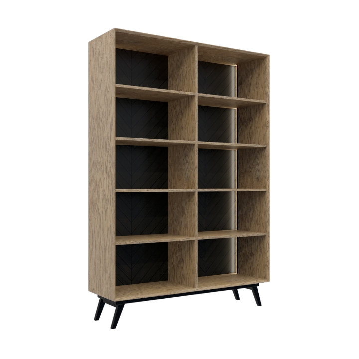 The Larte L1 bookcase offers up to 10 shelves made of furniture board in natural veneer, which allow for efficient space management. Made of veneered and lacquered furniture board, it ensures durability and aesthetics, and the whole is covered with a clear, semi-matte lacquer. Thanks to the use of natural materials, the bookcase perfectly combines modern design with high quality workmanship.