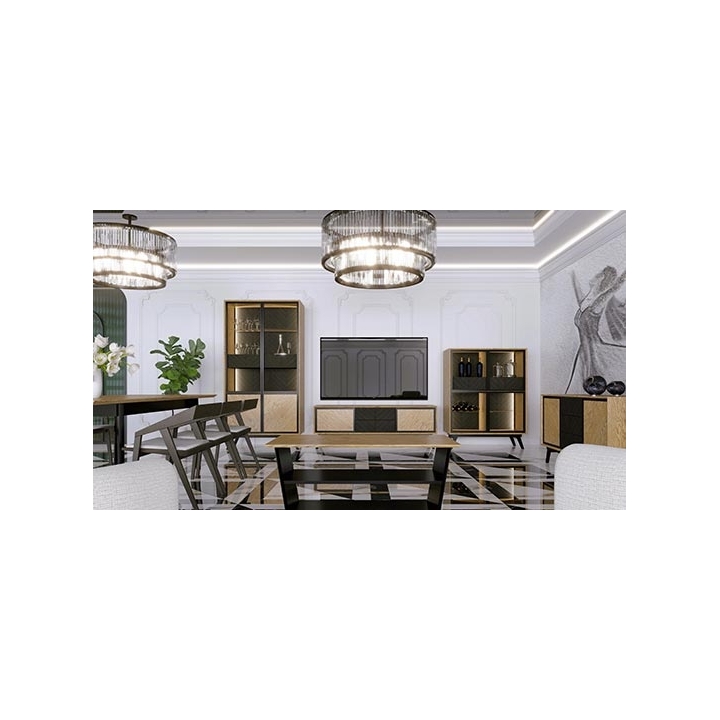 Ideal for the living room, this modern bar can be an interesting addition to enrich the interior design and create an atmosphere during social or family gatherings. Its attractive design and spaciousness make it an excellent choice for those looking for unique solutions for their interiors. The 4D 1S Larte L6 full bar is a proposal that will enrich your space with an unusual accent.