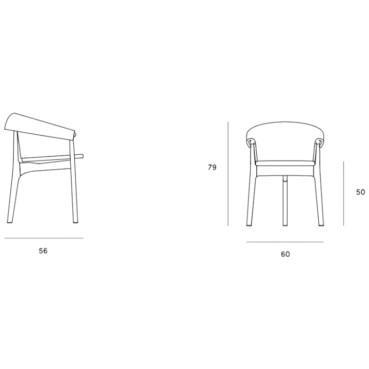 The dimensions of the chair are 60 cm wide, 79 cm high, 56 cm deep and the seat height is 50 cm. The fashionable design of the solid is evidenced by the use of only three legs instead of four, which creates a unique structure that does not lose its stability and durability.