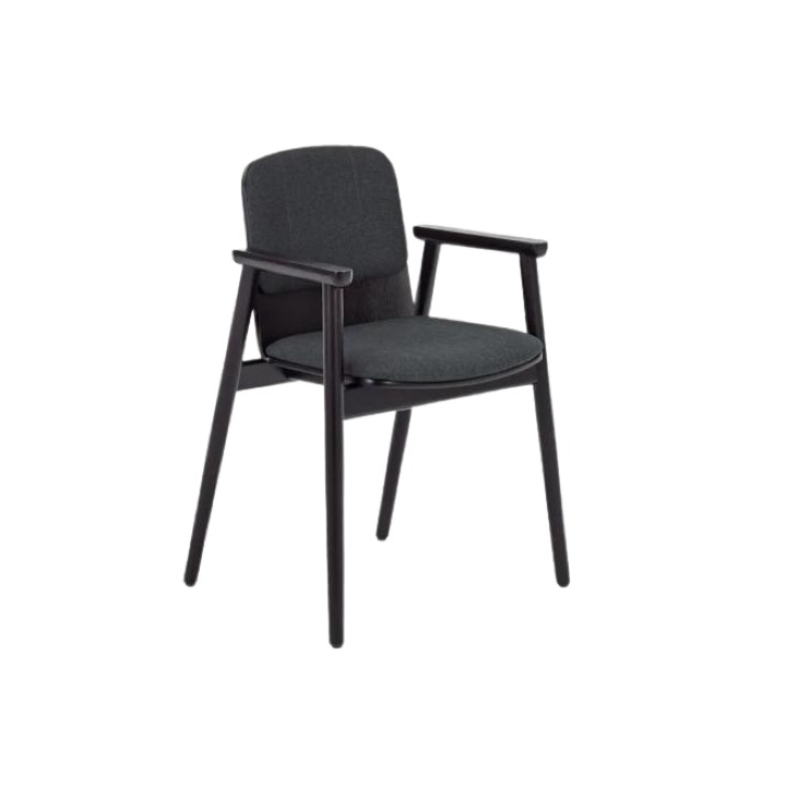 The dimensions of the chair are 60 cm wide, 83 cm high, 59 cm deep and the seat height is 50 cm. The trendy design of the solid is evidenced by the rounded legs, which creates a unique construction that is extremely stable and durable. An additional asset are the armrests, which significantly affect the comfort of use.