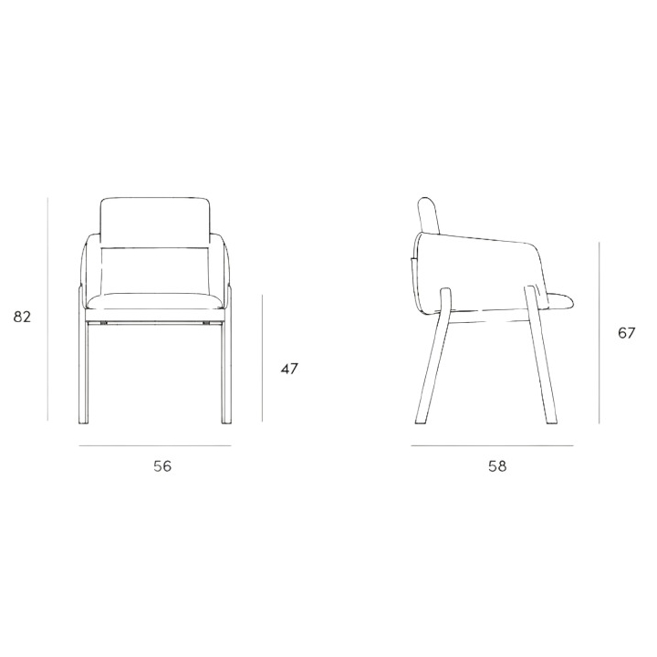 The dimensions of the chair are 57 cm wide, 82 cm high, 57 cm deep and the seat height is 48 cm. The fashionable design of the solid is influenced by the unique legs, as well as the bucket look of the furniture.
