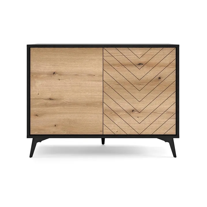 With a width of 104 cm and a depth of 39 cm, this chest of drawers is perfect for a spacious living room, a smaller bedroom or a modern hallway. Imagine the combination of black with the natural shade of Oak Evoke - this combination attracts attention and creates a striking contrast that fits perfectly with current interior trends.