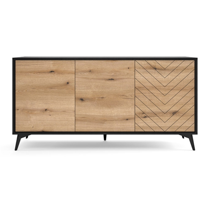 Wondering how to combine modern design with convenience of use ? This 154 cm wide chest of drawers with its expressive form attracts the eye right from the threshold. The combination of the warm shade of Oak Evoke with the deep black of the body creates a contrast that enlivens any interior - from the living room to the bedroom to the hallway.