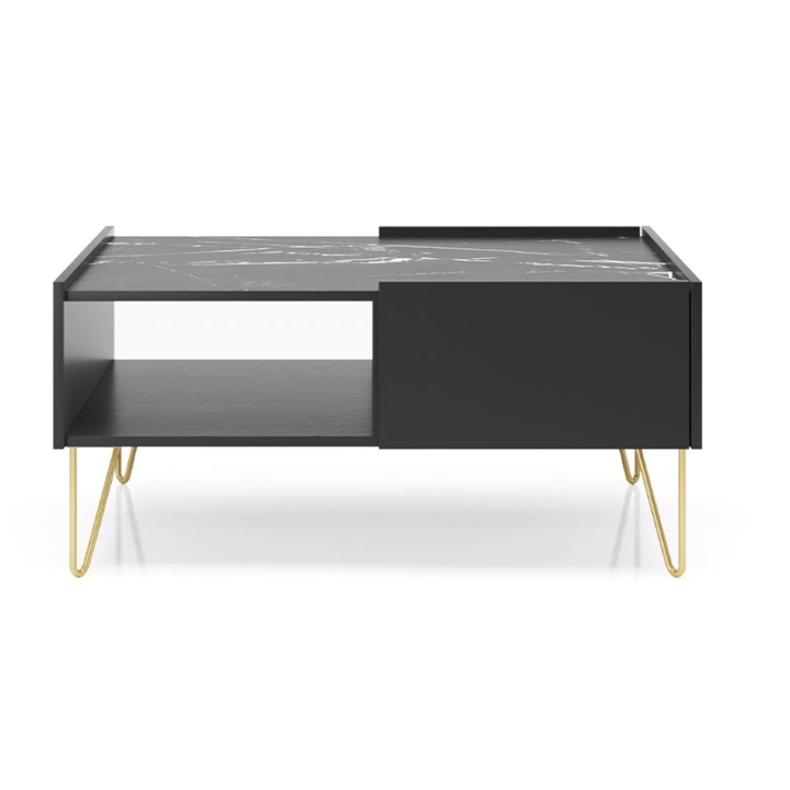 The L97 Harmony table is a piece of furniture that will easily change the character of your interior. If you are after a unique design, this table will be the perfect solution. Its dimensions(97 cm wide, 45 cm high, 65 cm deep) make it perfect for smaller as well as larger spaces. The black marble finish combined with the gold legs creates a striking composition that catches the eye and adds elegance to any room.