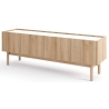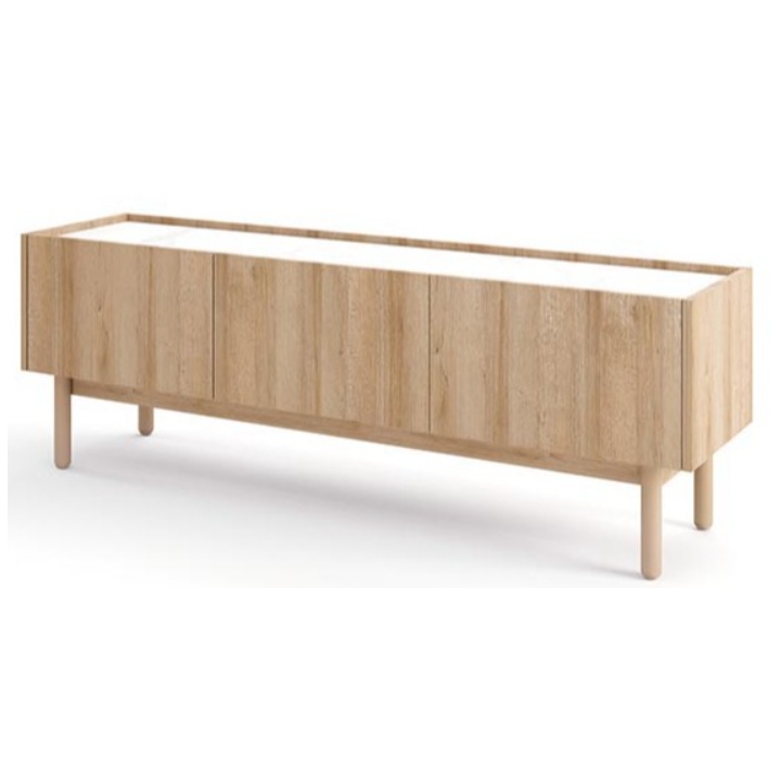 What catches your eye? The combination of the natural oak riviera shade with the subtle marble Bianco style top. It is a combination that goes well with arrangements inspired by boho style or Scandinavian simplicity. The Boho RTV cabinet can become not only a place for equipment, but also a strong design point for the entire living room.