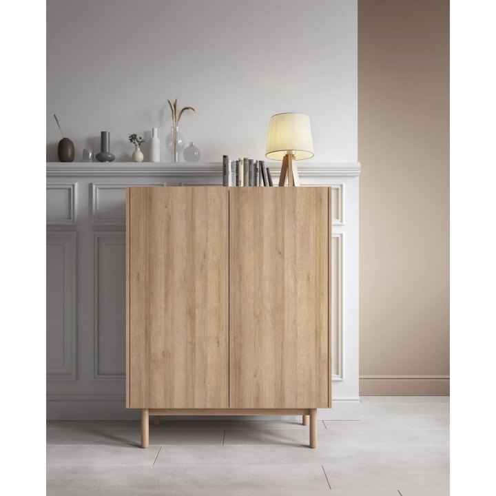 This is no ordinary chest of drawers for the living room. It is a piece of furniture that stands out in any room - from the hallway to the bedroom. The warm shade of riviera oak combines perfectly with the bianco marble top. Doesn't that sound like a combination of nature with a touch of modernity? And if you add the slender wooden legs of 19.5 cm height - you have lightness of form and freedom of daily cleaning.