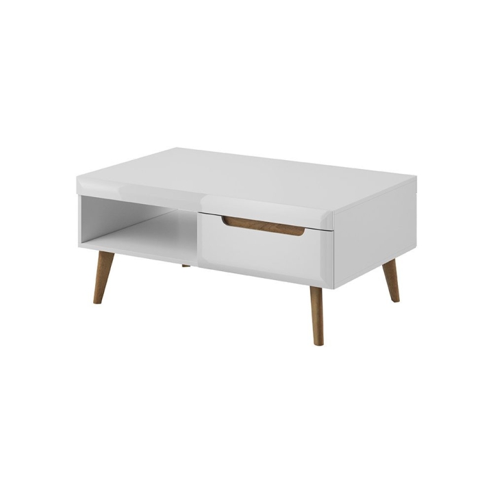 The Nordi NL107 bench in the white and riviera oak version is an expression of elegance and timeless design. The delicate décor and beautifully defined lines give the furniture lightness, while the high, subtly cut legs add finesse. White brightens up the space, making the interior pleasant to look at. The addition of riviera oak adds warmth and natural charm to the lava, while creating a harmonious combination with the rest of the Nordi collection. The stylised handles in the form of milling on the fronts add elegance, while the drawer for handy utensils and the open recess under the top make it not only an aesthetically pleasing but also a practical element of the living room or dining room.