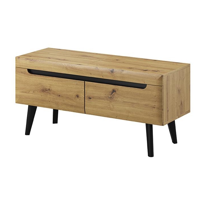 Do you want a compact and stylish piece of furniture to store your RTV equipment? The 107 cm wide Nordi Artisan RTV cabinet is the perfect choice. Made of 16 mm thick laminated board, with 18 mm MDF trim and a milled handle in the front, this piece of furniture combines functionality and elegance. The wood legs, painted black, add expression to the whole composition. The dimensions of 107x83x40 cm make the furniture ideal even in small rooms, and the colour of the artisan oak gives it a natural charm.