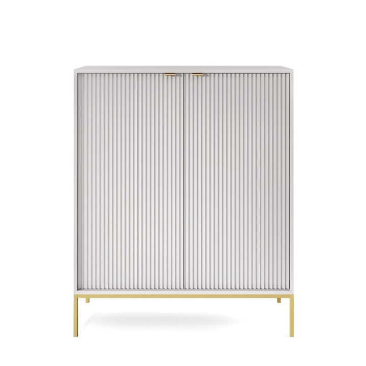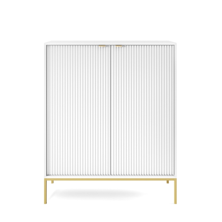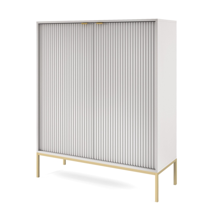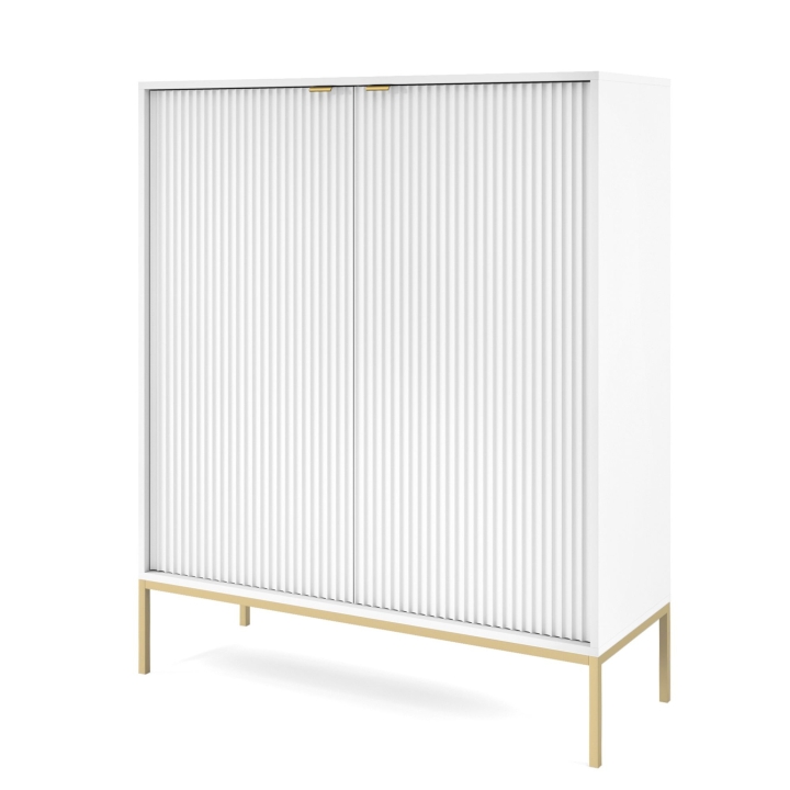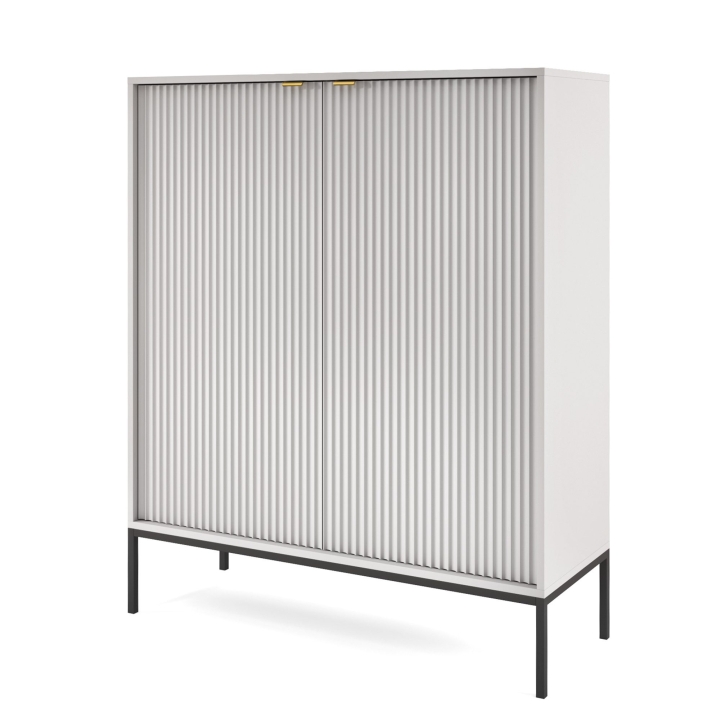Are you looking for a chest of drawers that combines functionality with a designer look? The Nova KSZ104 chest of drawers is the perfect solution. Made from solid 16 mm laminated board, with 0.5 mm ABS edging, and fronts made from 18 mm thick corrugated MDF, this piece of furniture will bring a modern style to your interior. An additional feature is the aluminium handle, giving the furniture a subtle character. The benefits of this chest of drawers include a variety of colours and finishes. Available in three basic colour options - black, white and grey. For the black, white or grey variant, the leg frame can be either black or gold, allowing you to customise the furniture to your own preferences. The white variant consisting of a white body, leg frame in black or gold and fluted fronts adds elegance and lightness. With dimensions of 104x83x39 cm, the Nova KSZ104 chest of drawers will fit perfectly into both modern and classic interiors, offering both practical storage and stylish design.