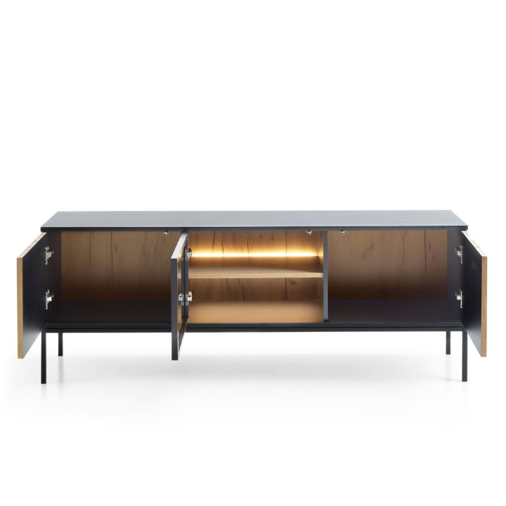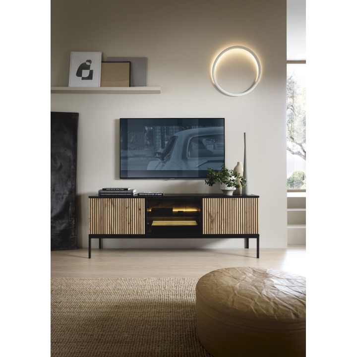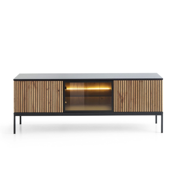 Are you looking for a modern and elegant RTV cabinet that will enhance the character of your living room? The Sento RTV154 RTV cabinet is an excellent choice, combining high quality workmanship with aesthetics. Its fronts in the shade of Wotan Oak harmonise perfectly with the black colour of the body and legs, creating a striking composition. This furniture not only impresses with its design, but also offers practical solutions. With its compact dimensions (104 cm wide, 78 cm high, 50 cm deep) it is perfect even in smaller rooms. The sturdy construction includes 16 mm thick laminated boards in the body, as well as 18 mm thick corrugated MDF fronts. An additional asset of the cabinet is the aluminium handle, giving the furniture a modern look. Stability and durability are ensured by a powder-coated steel leg frame and a solid 18 mm wide profile. The Sento RTV RTV154 cabinet is not only a practical place to store RTV equipment, but also a design element that will blend into any interior, adding elegance and functionality. Will you opt for this unique piece of furniture for your living room?