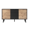 The Willow KSZ154 chest of drawers is a practical and elegant proposal for your living room. Designed from laminated board and MDF, reinforced with ABS edging and with black wooden legs, it is an exceptional piece of furniture both aesthetically and functionally. Three capacious drawers and two lockable cabinets will allow you to easily store all sorts of items, while the decoratively fluted fronts in artisan oak add elegance to your living room. Thanks to the push to open system, opening and closing the furniture is extremely easy and convenient. The dimensions of the chest of drawers are 154 cm wide, 83 cm high and 39 cm deep, making it a practical yet designer piece of interior furnishings.