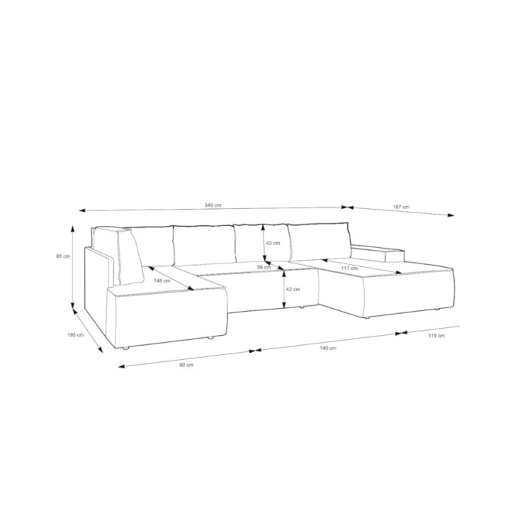 The Fiord U2 140 corner sofa is a practical solution for those looking for a modern and comfortable piece of furniture for their living room. With a width of 349 cm and a depth of 195 cm, this corner sofa provides ample seating space, perfect for relaxing with family or friends. The seat of the corner sofa is based on corrugated springs and a foam insert, which guarantees comfort and ergonomic support. The seat depth of 56 cm and the seat height of 42 cm create comfortable conditions for relaxation. The Fiord U2 140 corner sofa not only impresses with its design, but also proves itself as an additional sleeping area. With a DL sleeping function and a sleeping surface of 135x313 cm, it provides a practical solution for guests. The bedding container further facilitates the storage of essential items. The modern style of this corner sofa makes it a perfect match for a variety of interior designs. The Fiord U2 140 corner sofa is distinguished by its simple form and functionality, making it a practical and stylish addition to your living room.