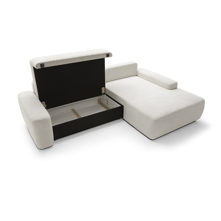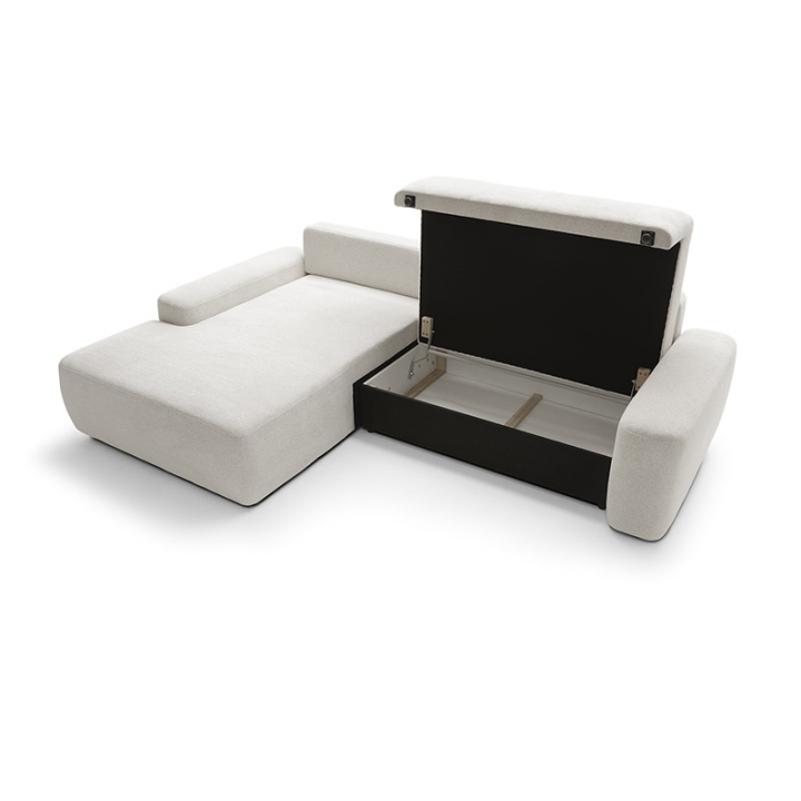 Bouli M is equipped with a sleeping function that allows you to instantly transform it into a space for a night's rest. Thanks to the DL system, unfolding the corner sofa is quick and effortless. The sleeping surface is 210 x 134 cm - enough space to comfortably accommodate guests or take a nap.